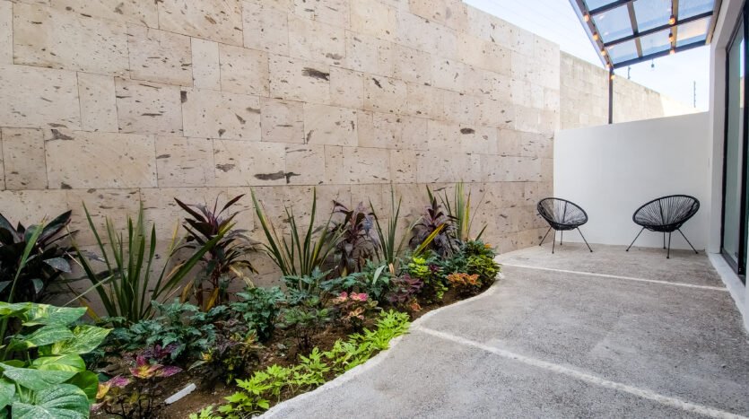 - Patio with garden,