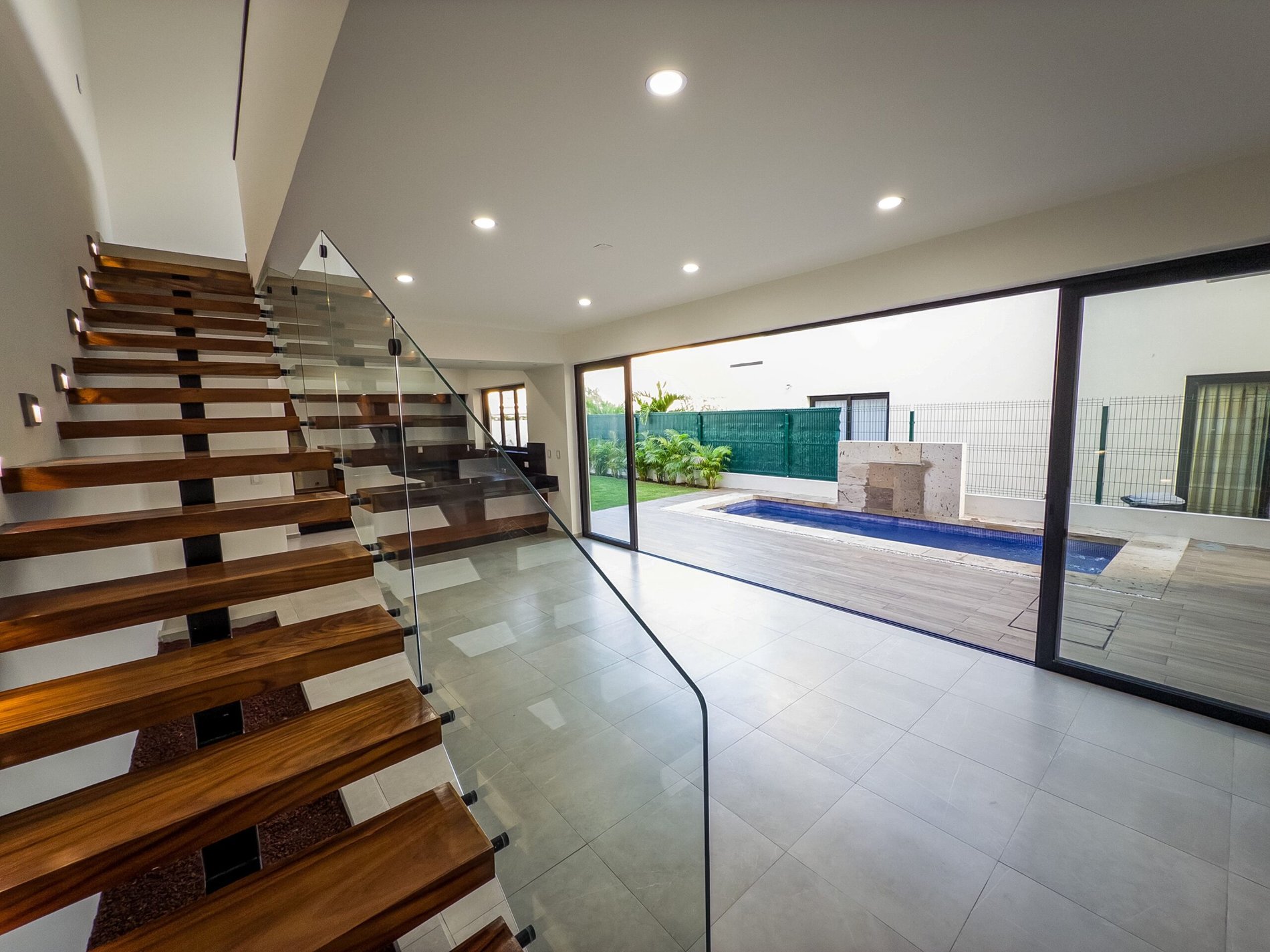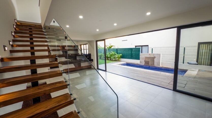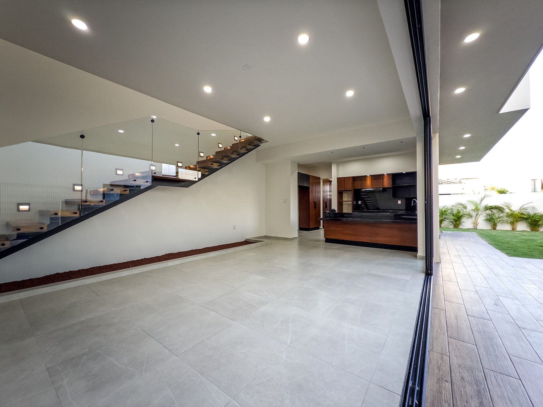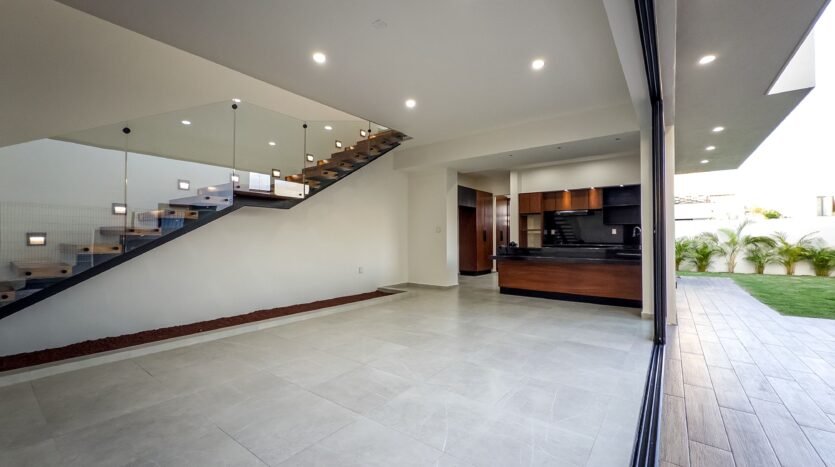 Imagine opening a solid parota wood door and being welcomed by a double-height living area filled with natural light. Every detail—from premium windows to porcelain flooring—creates an elegant and inviting atmosphere.