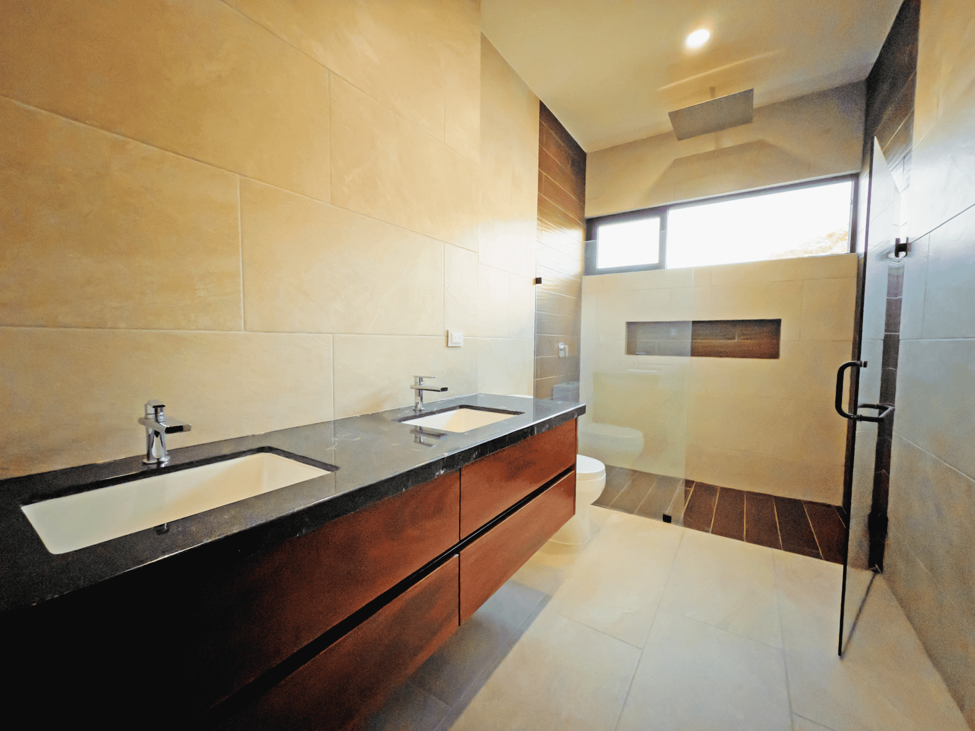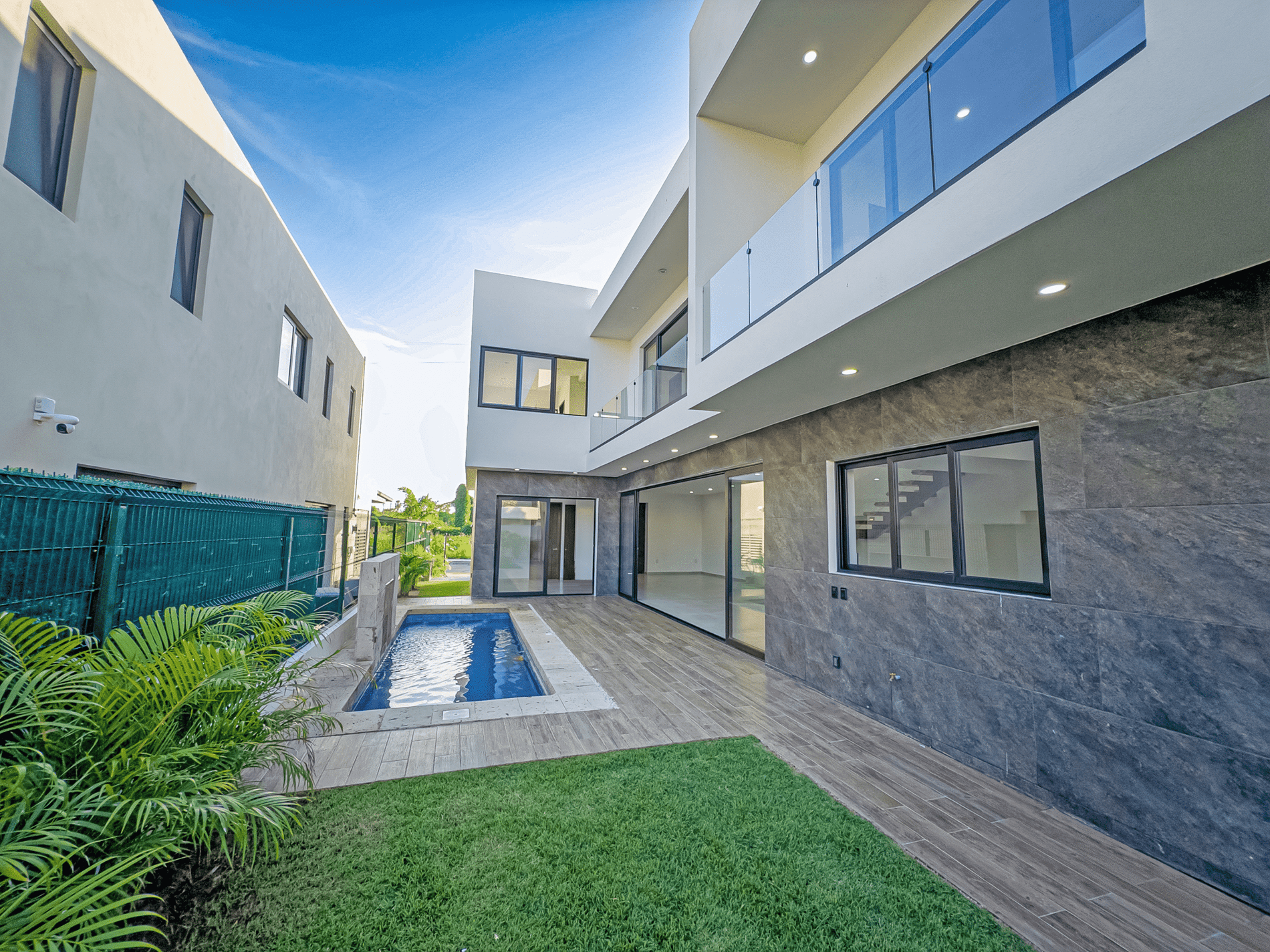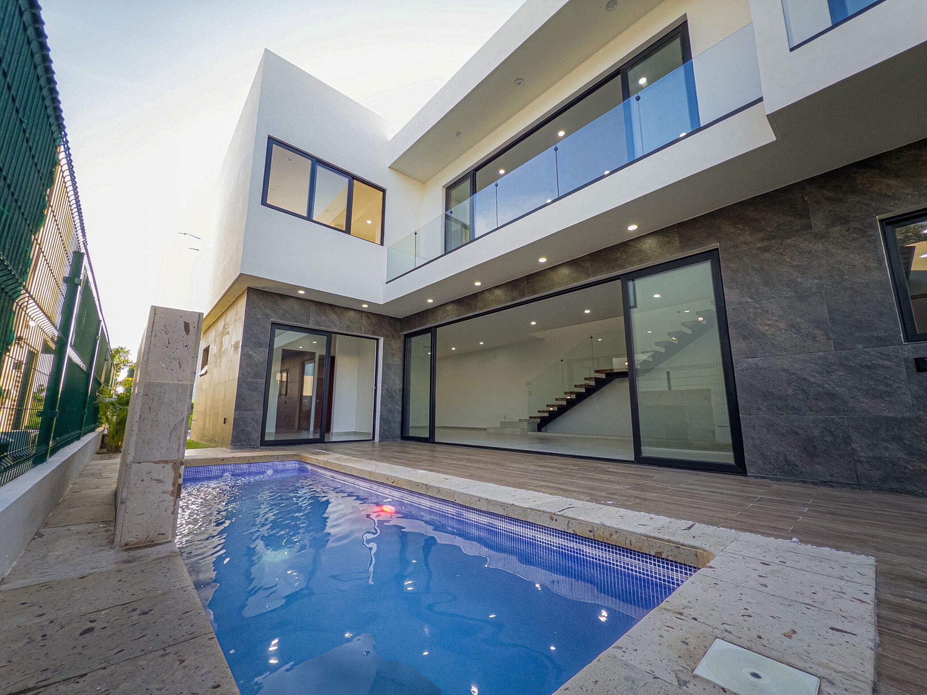 Imagine opening a solid parota wood door and being welcomed by a double-height living area filled with natural light. Every detail—from premium windows to porcelain flooring—creates an elegant and inviting atmosphere.