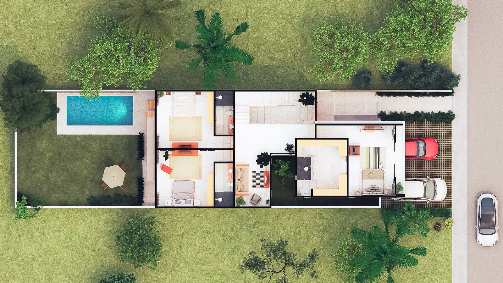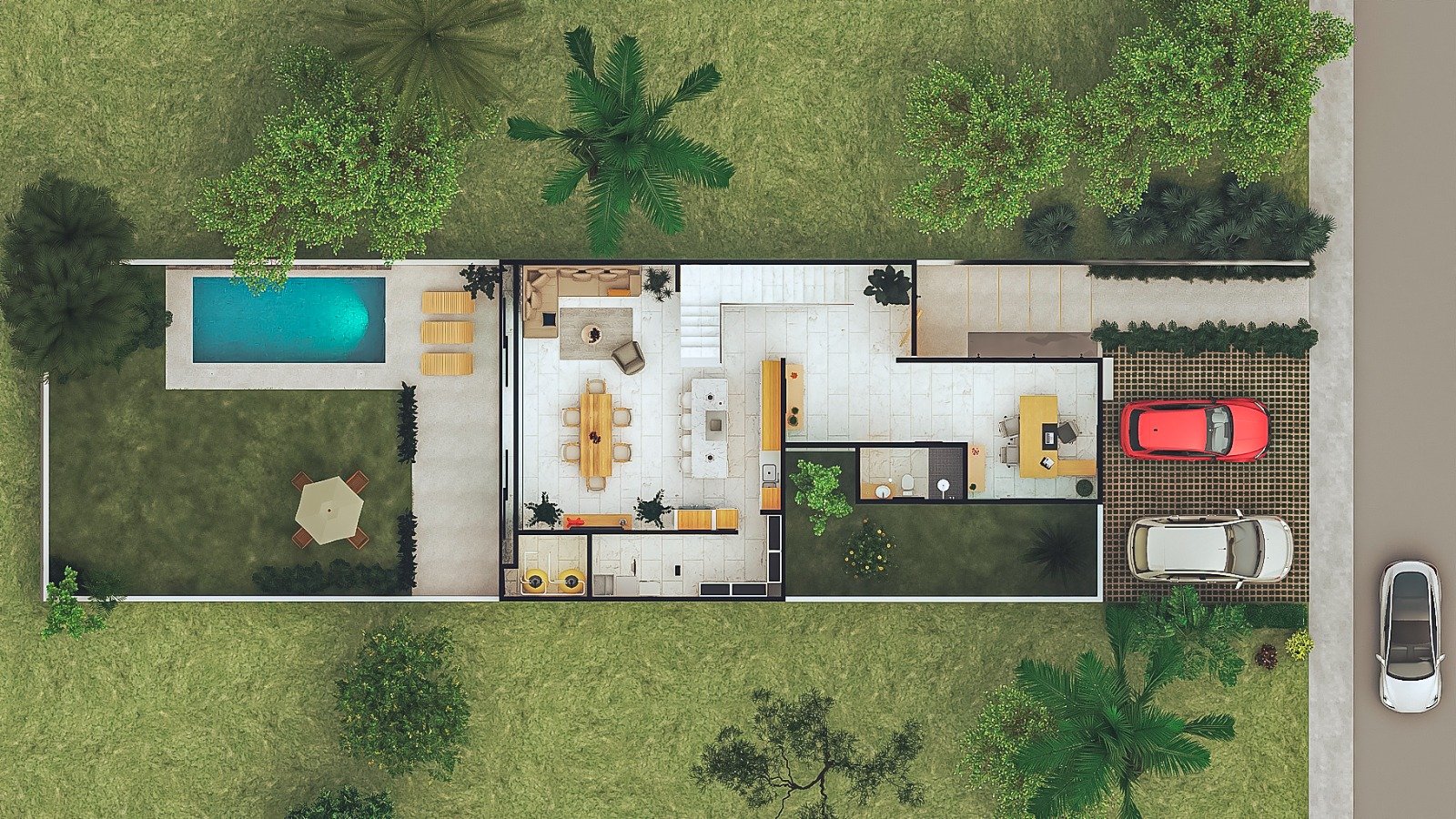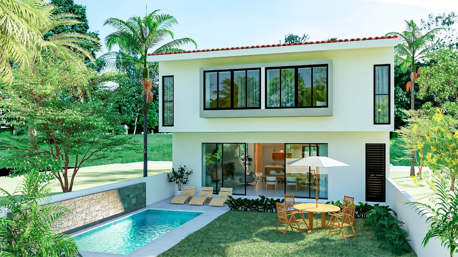 This pre-construction home in Fluvial Vallarta sits on a 370 m² lot and will feature 343 m² of total construction, a size that stands out from the moment you review the project. The property includes a 25.2 m² swimming pool and a spacious private backyard, a rare feature among new homes in the area and highly valued by both families and investors.