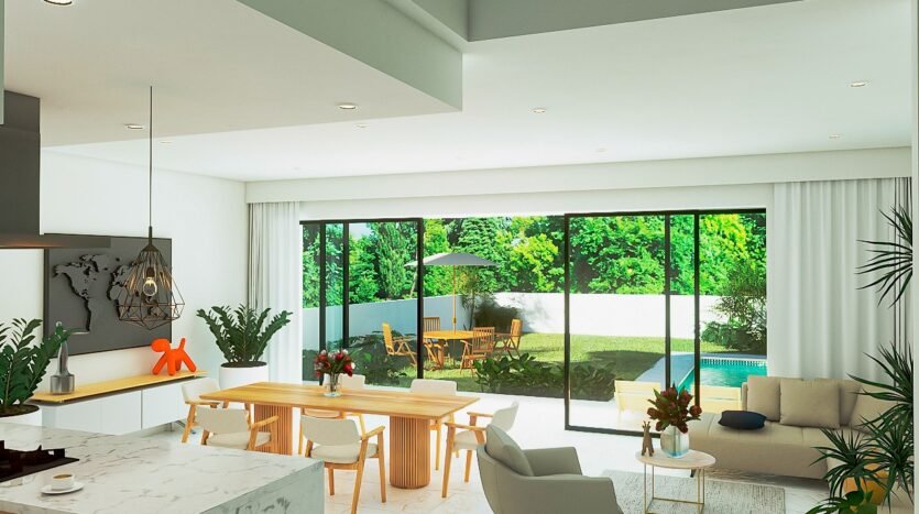 From the moment you enter, this Fluvial Vallarta home for sale delivers a strong sense of openness and comfort. The social areas are designed in an open-concept layout where the living room, dining area, and kitchen flow naturally together, with direct access to the backyard and pool—ideal for entertaining, family living, and outdoor gatherings.