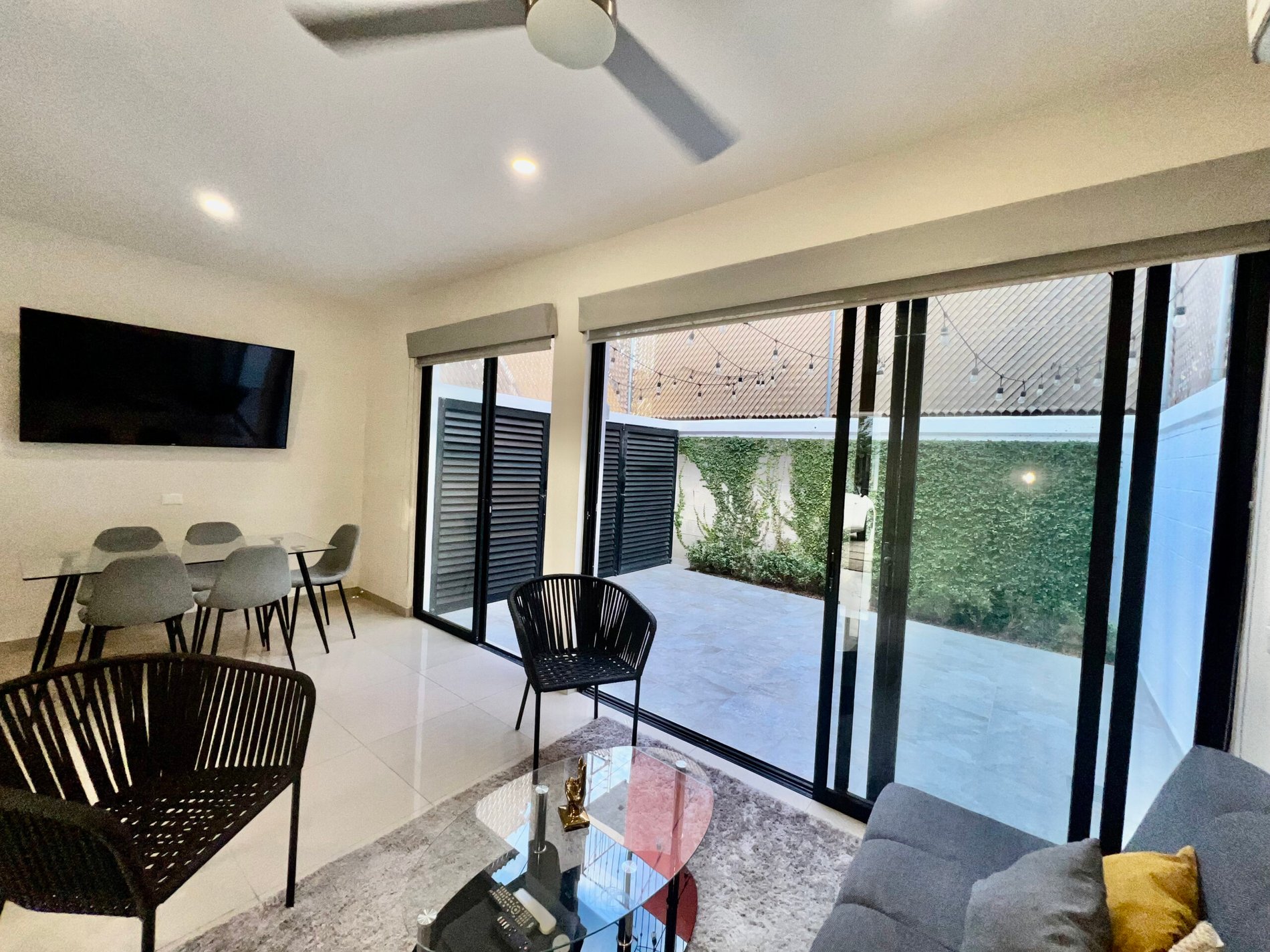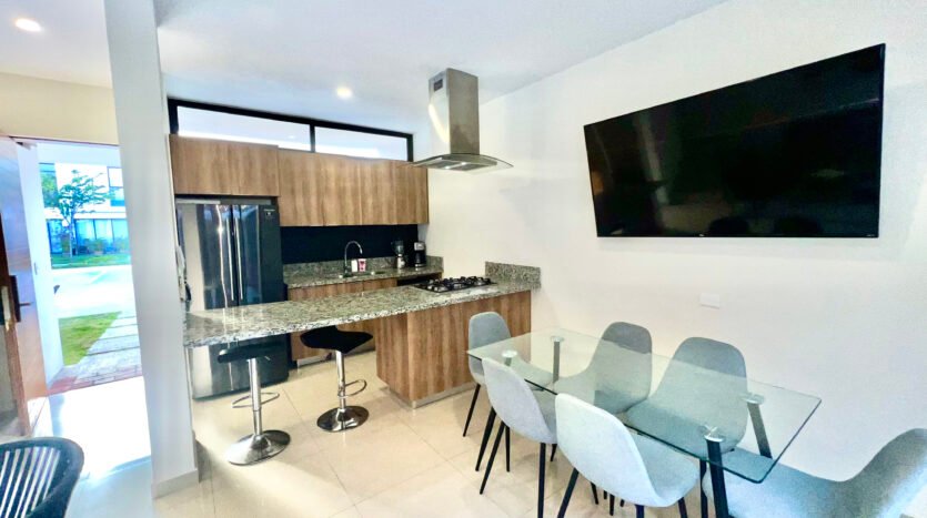 - Espacio de sala y comedor amueblados, con smart tv, aire acondicionado y excelente iluminación natural.