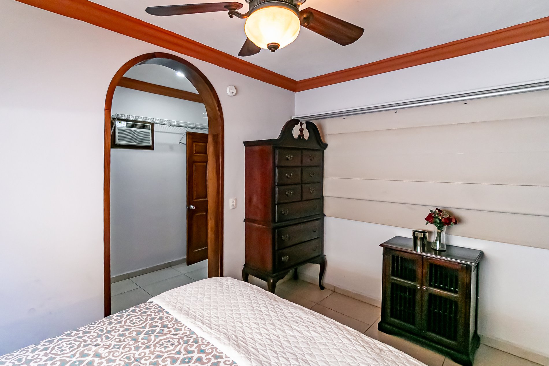 Amplio recibidor, sala con aire acondicionado y ventilador de techo con luminaria, Cocina integral equipada con estufa, campana y candil decorativo, Recámara con baño completo, clóset, aire acondicionado y ventilador de techo, Terraza con asador, ventilador de techo y espacio ideal para convivencias familiares, Área de lavado con centro de lavado, Estacionamiento techado para dos autos.