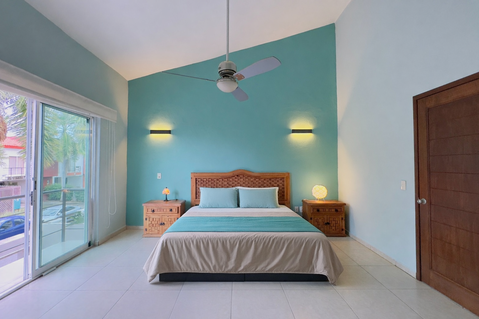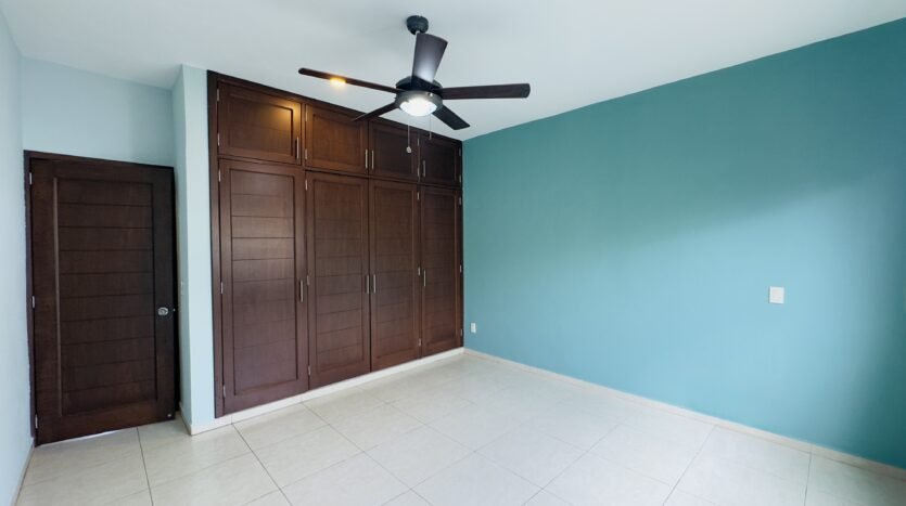 En la planta alta se localizan tres recámaras. Las dos recámaras secundarias cuentan con clóset, aire acondicionado y ventilador de techo, y comparten un baño completo. La recámara principal destaca por su amplitud, walking closet, baño completo privado y balcón con vista a la calle, brindando privacidad y sensación de apertura.