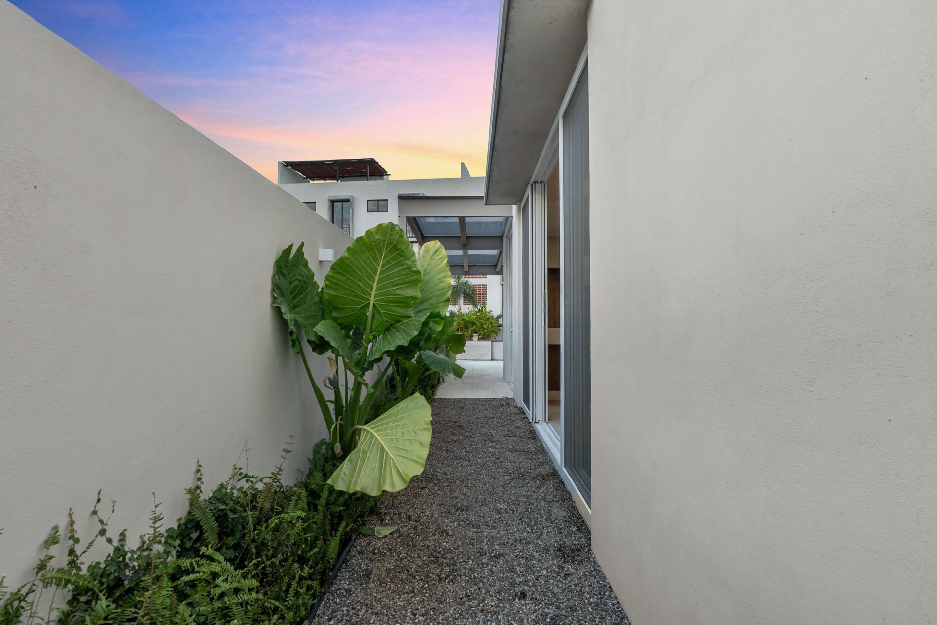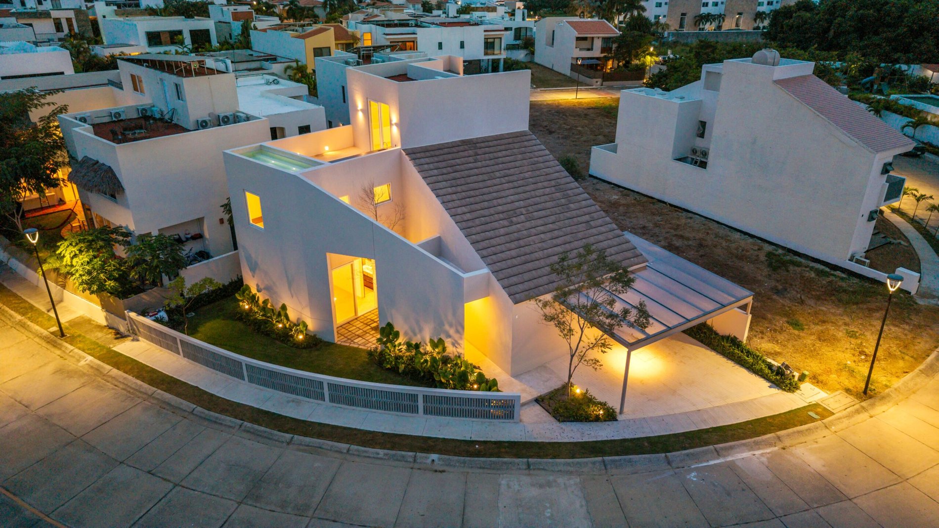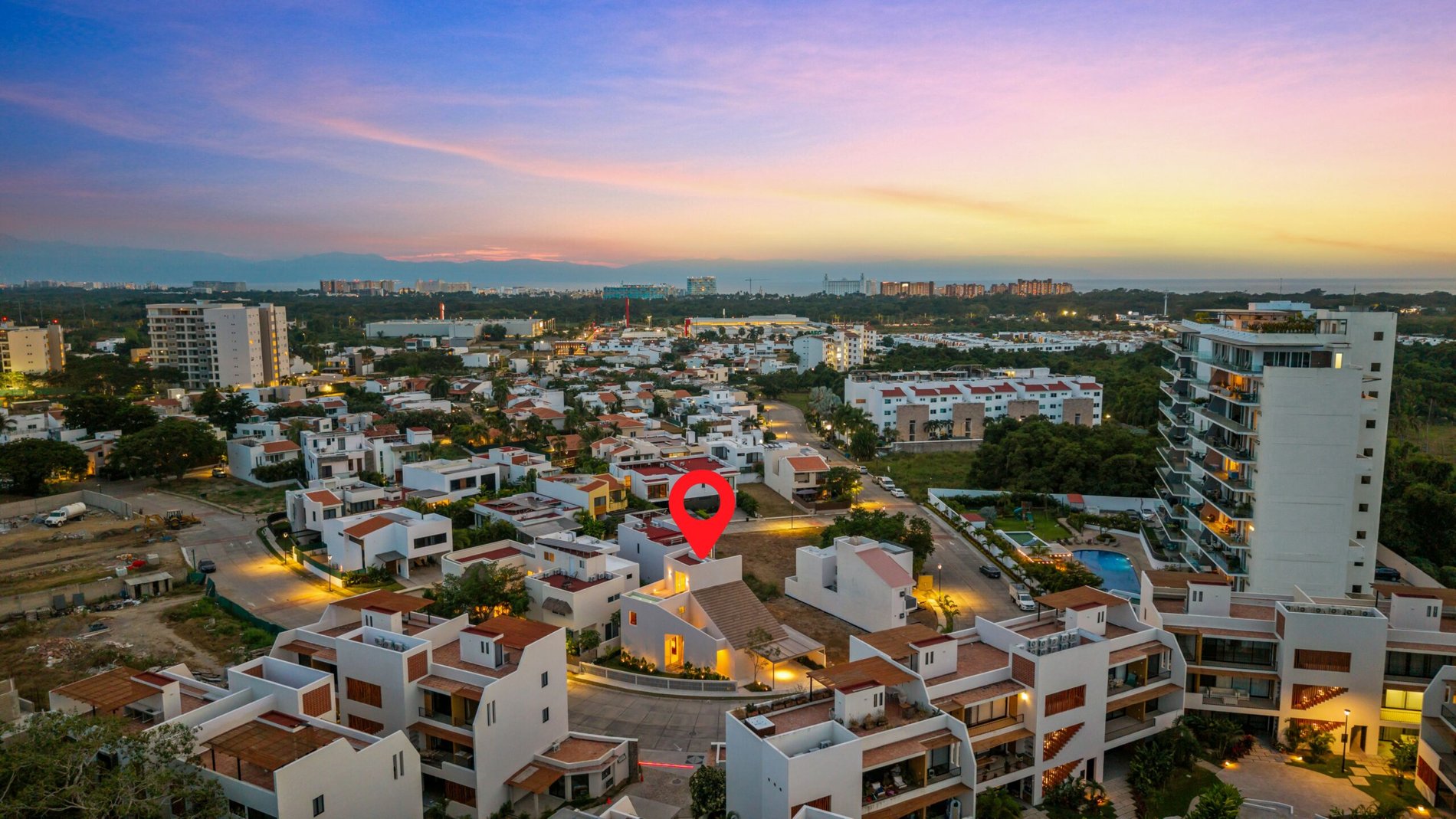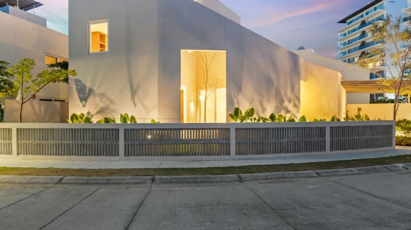 Casa nueva en Flamingos Residencial, fraccionamiento exclusivo y seguro en Bucerías. Su arquitectura moderna destaca por líneas limpias, iluminación cálida y acabados premium en rosa morada Perfecta para familias o retiro por su distribución cómoda, privacidad y ambiente de bienestar.