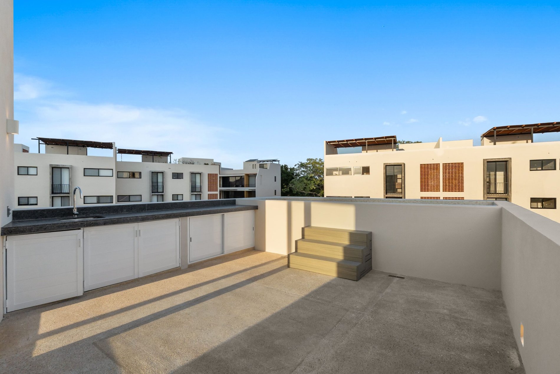 – Tercer nivel: ofrece un área flex con medio baño, terraza techada y una plunge pool privada ideal para relajarse.