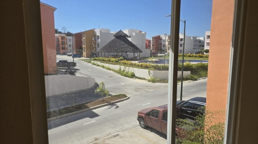 Conoce este departamento en renta en Ecoterra Vallarta, ubicado en segundo nivel y con vista hacia la alberca y áreas verdes, frente a las amenidades del fraccionamiento.
