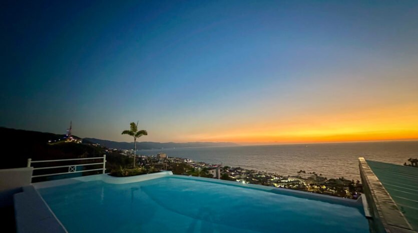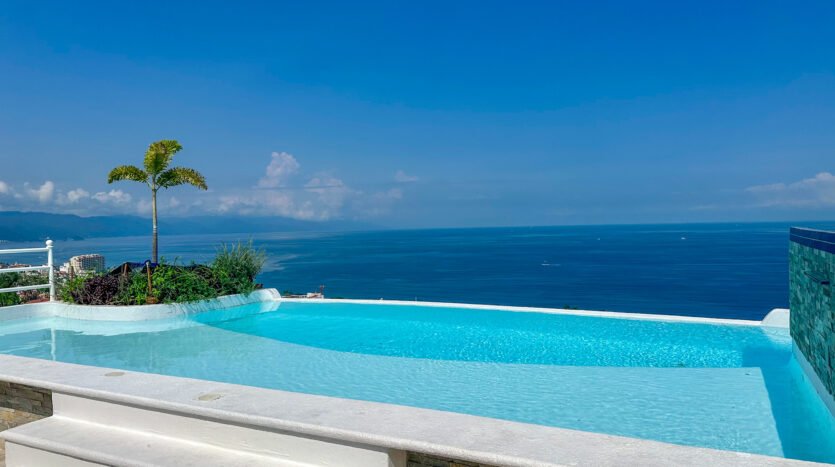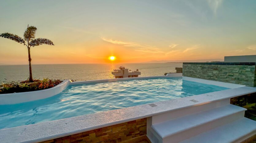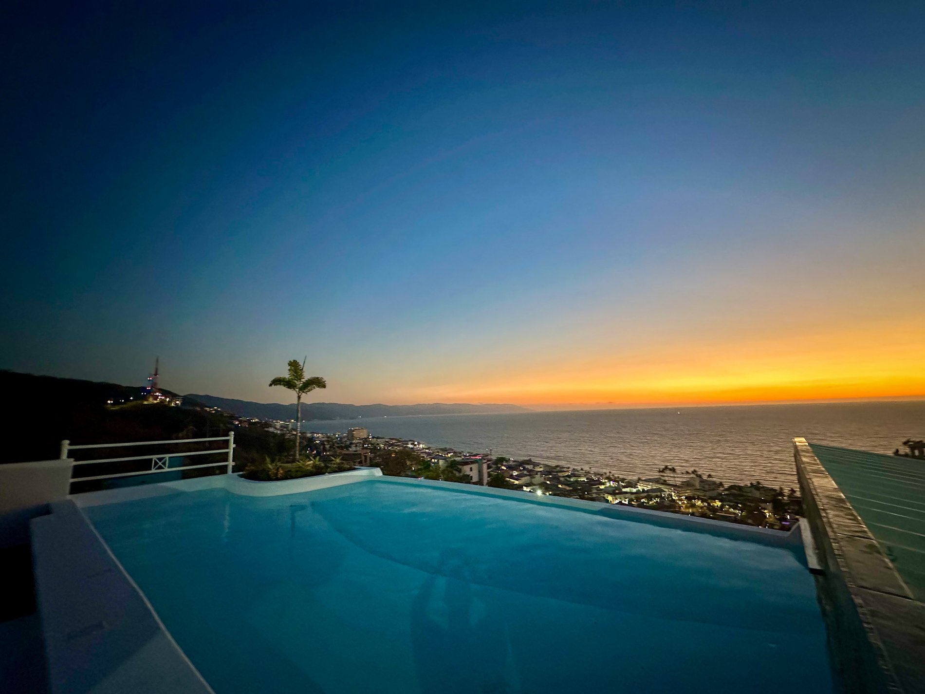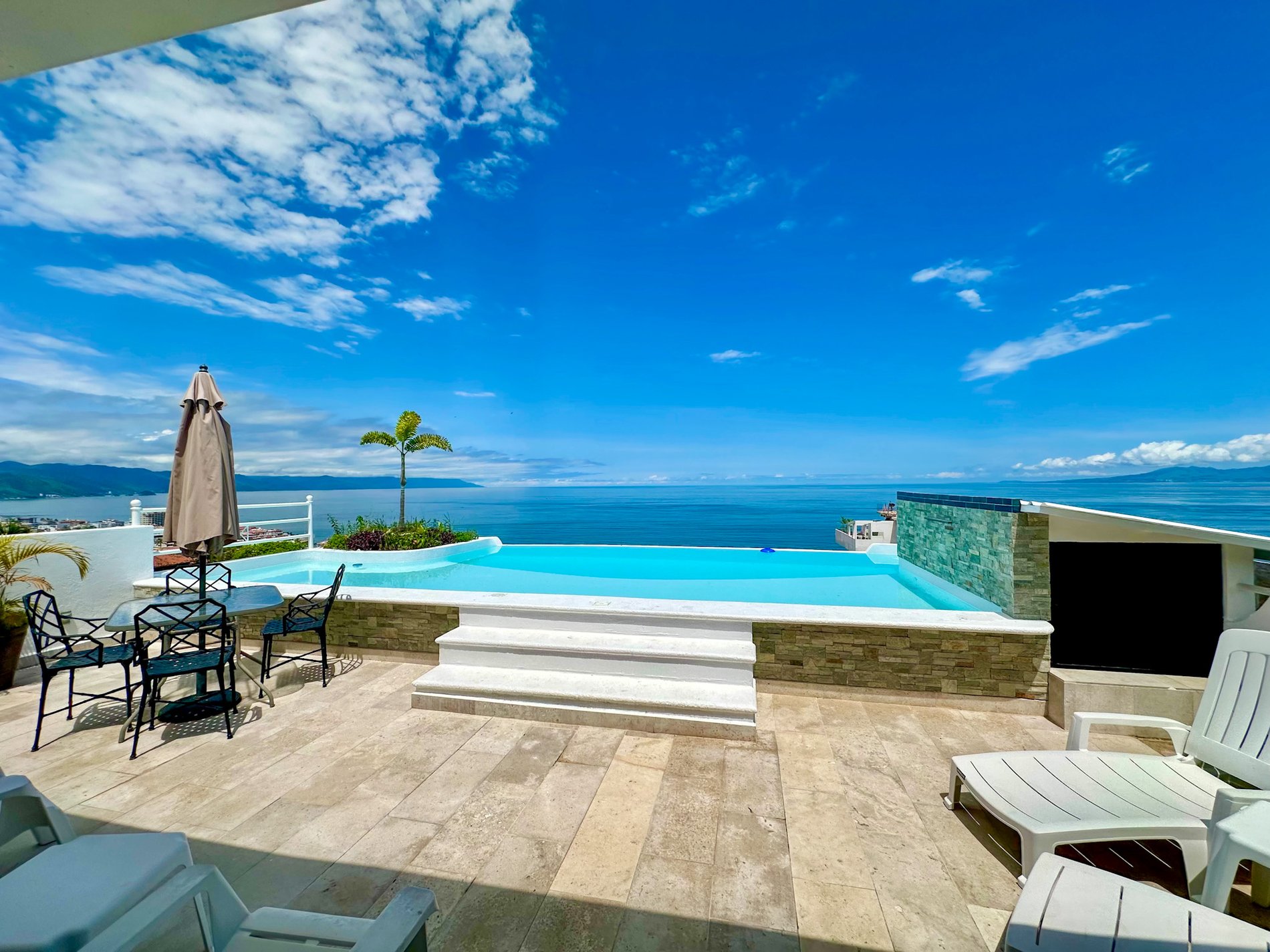 La alberca infinita compartida en el rooftop ofrece una impresionante vista panorámica de la Bahía, con un área cubierta para sentarse y comer, perfecta para relajarse y entretenerse. Es la ubicación ideal para disfrutar el sol, agua, y vista en igual medida. Esta área va a llenar su alma con la sensación que está al centro de esta gran Bahia, con los Arcos de Mismaloya del lado izquierdo y Punta de Mita del lado derecho.