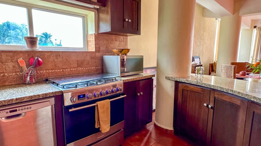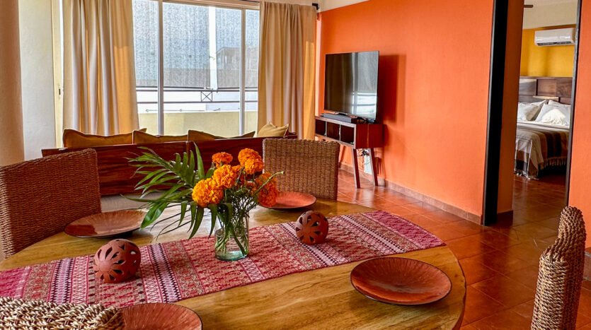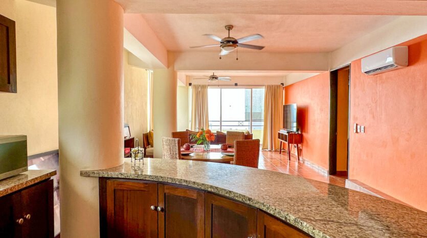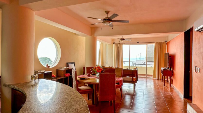 Para pasar tiempo en familia o con huéspedes, este condominio en 5 de Diciembre cuenta con una terraza larga que une la sala y el dormitorio principal. Con espacio suficiente para asador, combina vistas del mar, la selva y las montañas al mismo tiempo — esta es la esencia de la vida Vallartense.