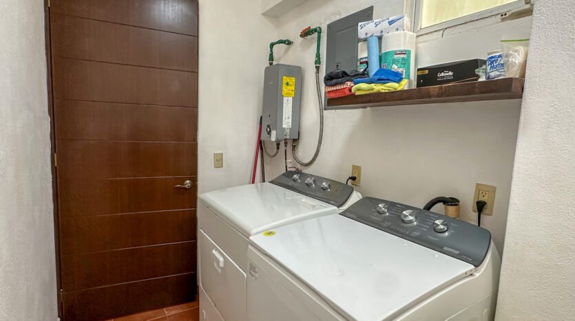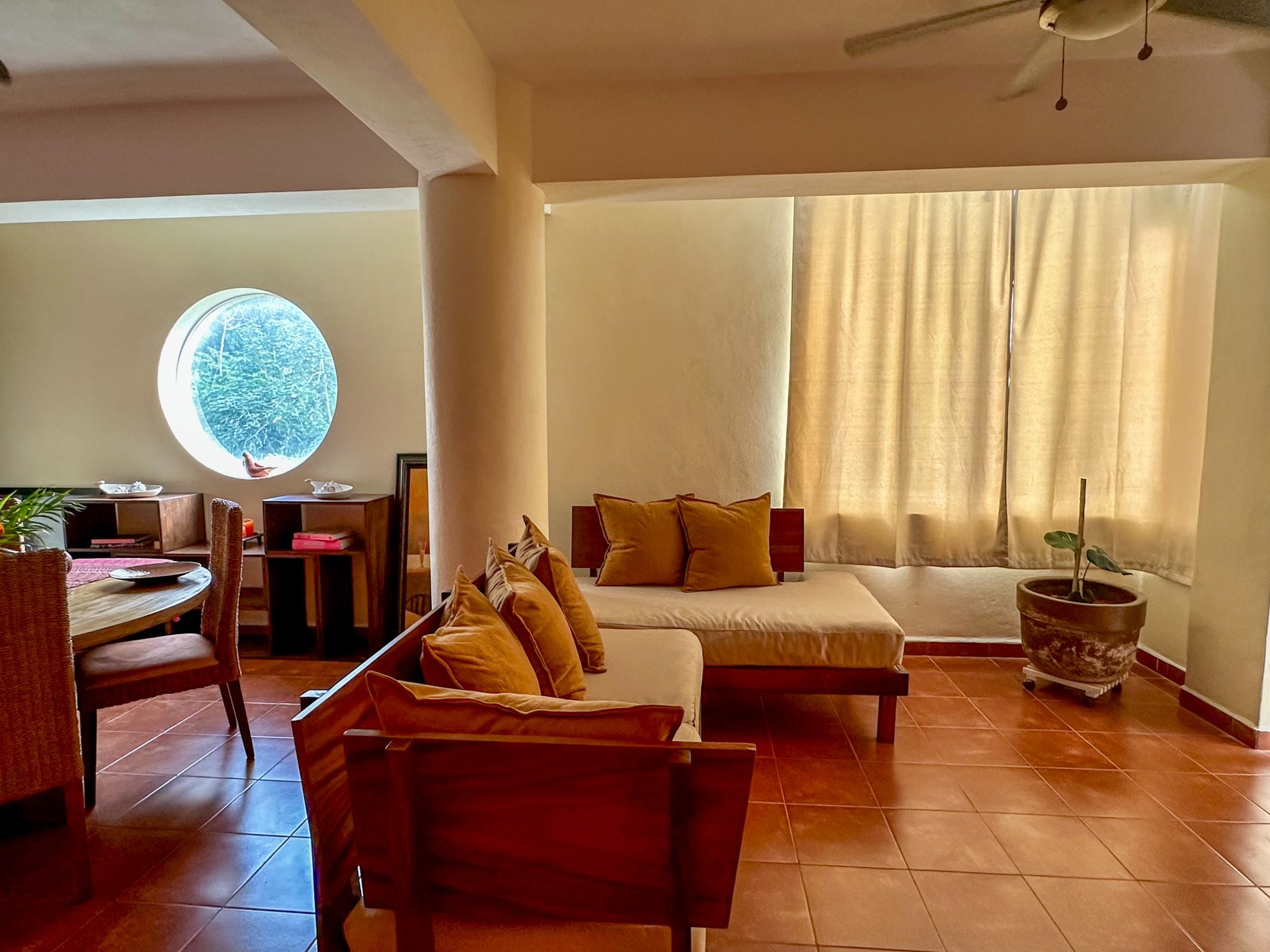 Este condominio también cuenta con sala con conexión al balcón, vistas impresionantes y muebles de parota. Incluye un cuarto de lavabo independiente con lavadora y secadora grandes (no centro de lavado). Hay mucho espacio de almacenamiento para herramientas y equipos de limpieza sin abarrotar el espacio habitable.