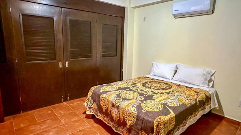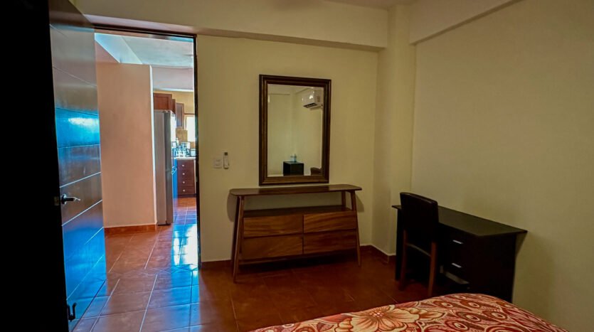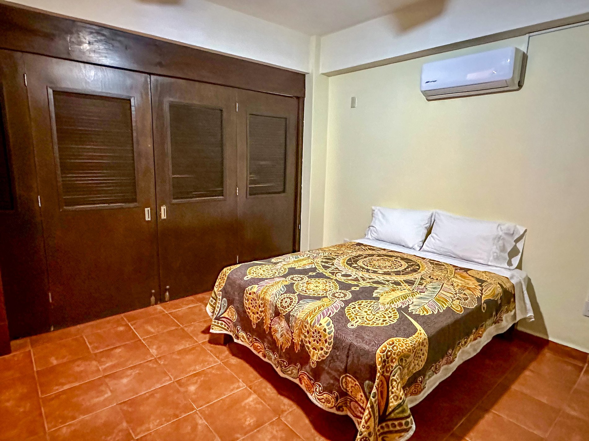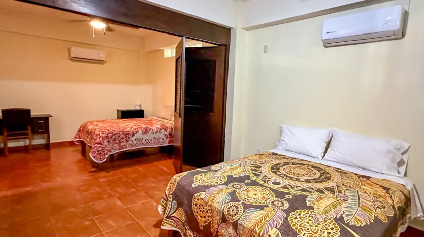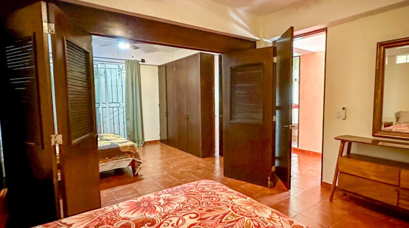 La segunda recámara es una recámara grande con dos camas o, usando el tabique móvil, dos recámaras con puertas independientes. Una tiene clóset grande construido y la otra muebles de madera de parota.
